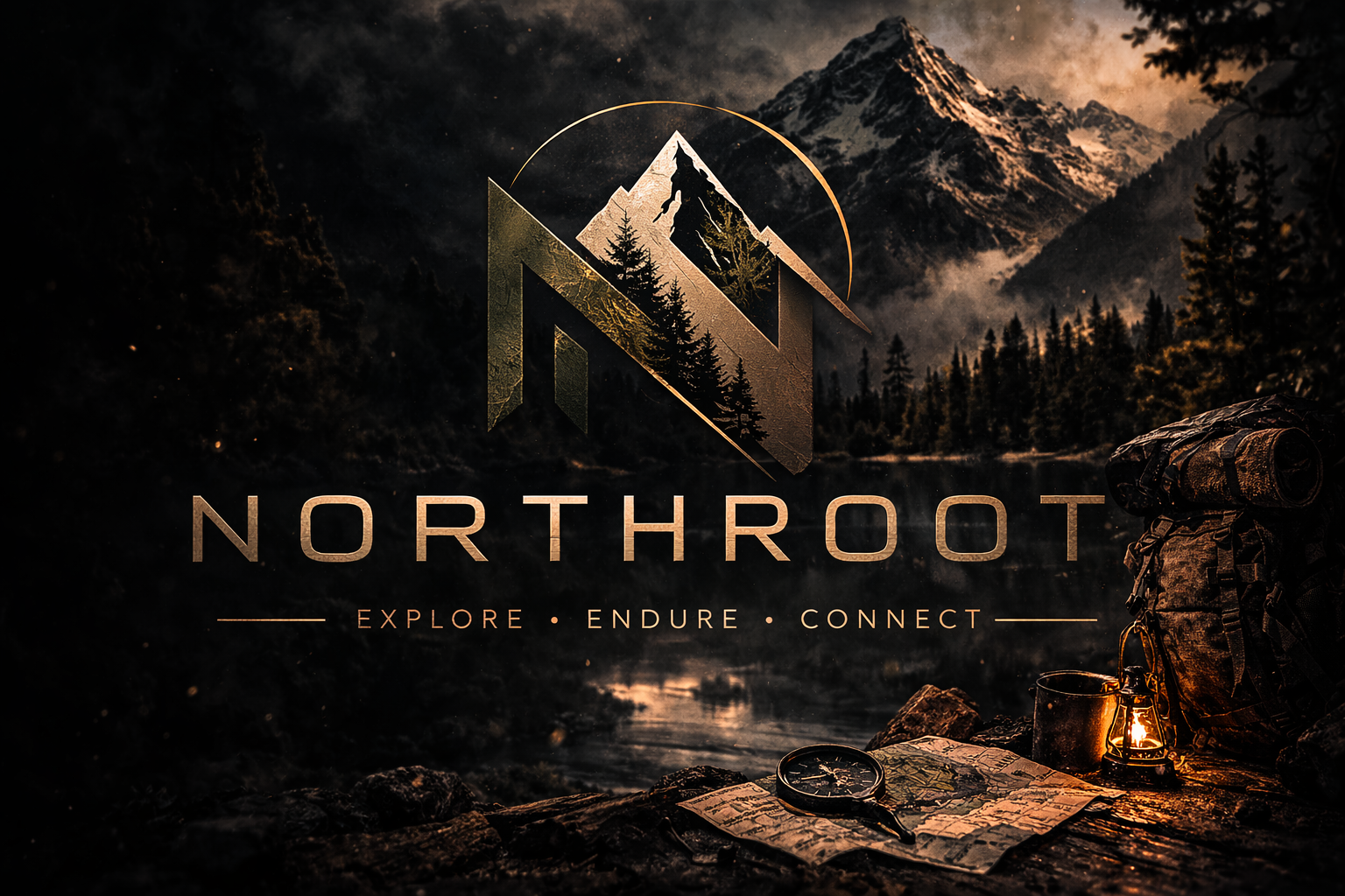 Doğa ve keşif temalı outdoor ekipman markası için geliştirilen güçlü tipografi ve ürün kimliği sistemi.